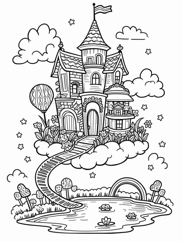 Dreamhouse in the Clouds with Giant Accessories Coloring Page
