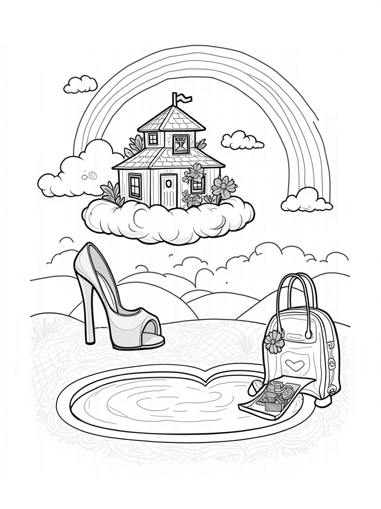 Dreamhouse on a Cloud with a Giant Shoe Slide Coloring Page