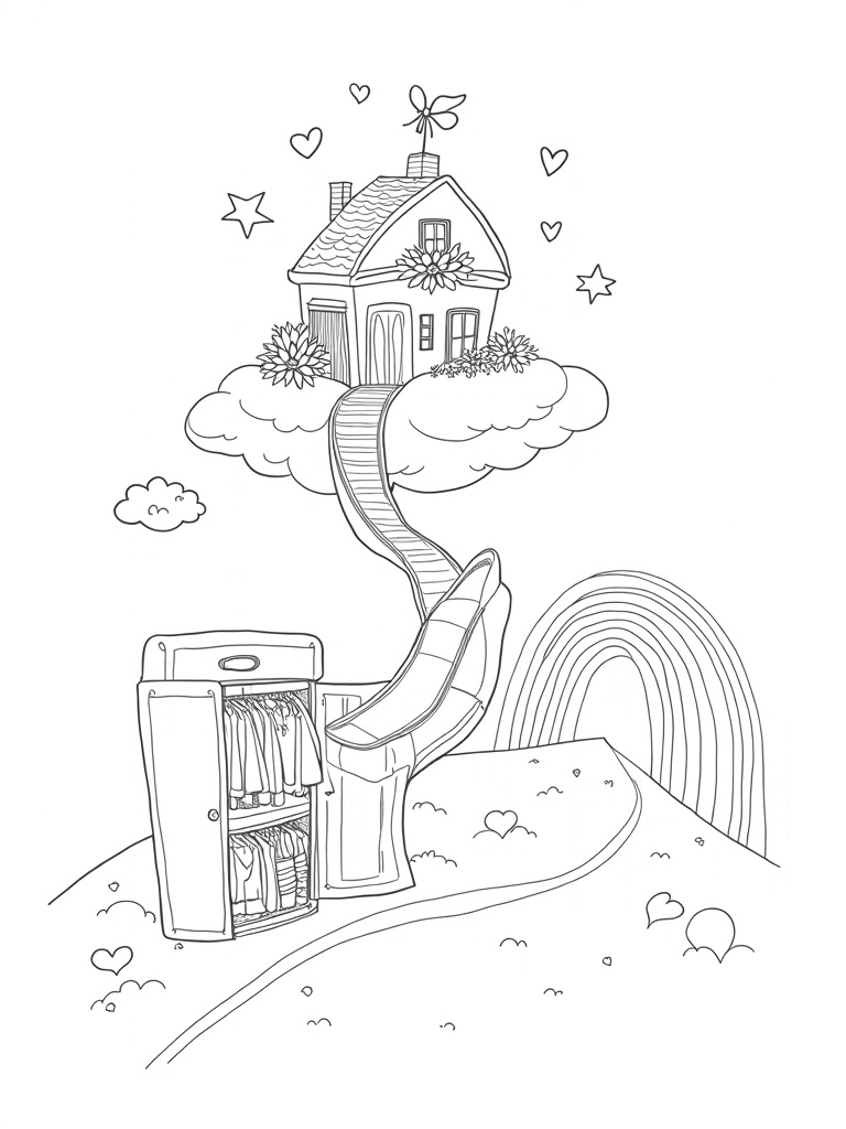 Dreamhouse on a Cloud with a High-Heeled Slide Coloring Page