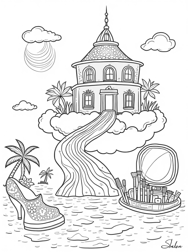 Dreamhouse on a Cloud with Fashion Accessories Coloring Page