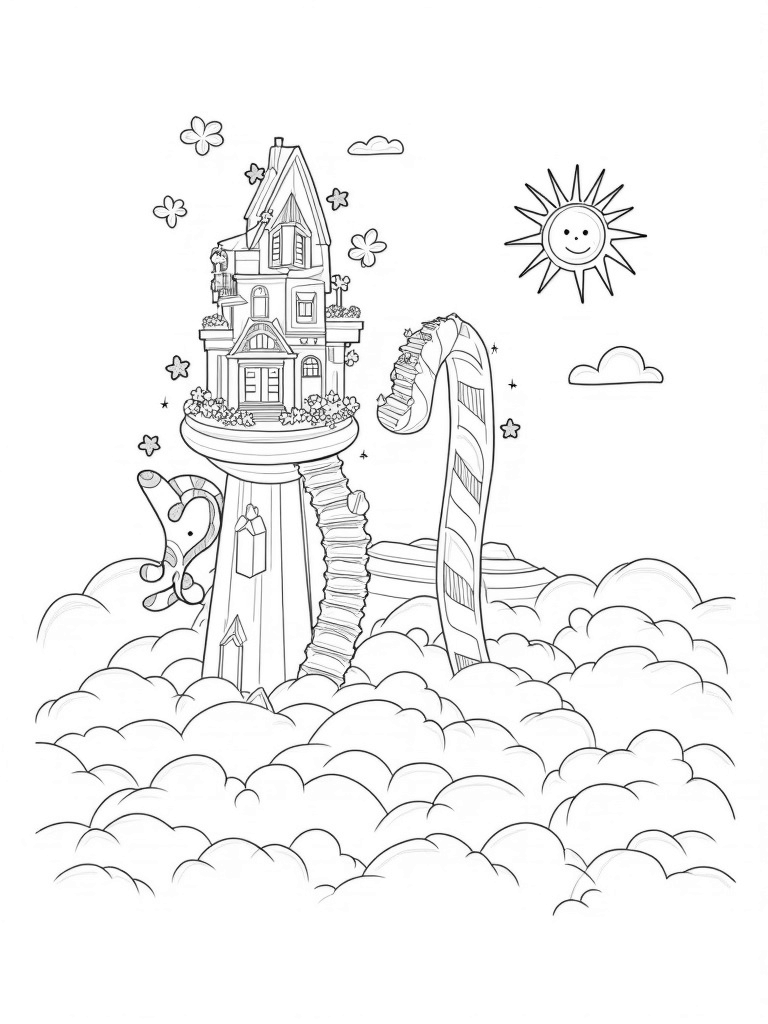 Dreamhouse on Clouds with Candy Cane Pillars Coloring Page