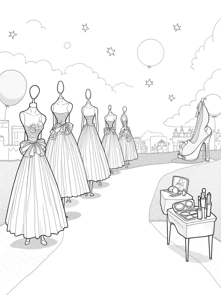 Fashion Runway in a Dreamy Landscape Coloring Page