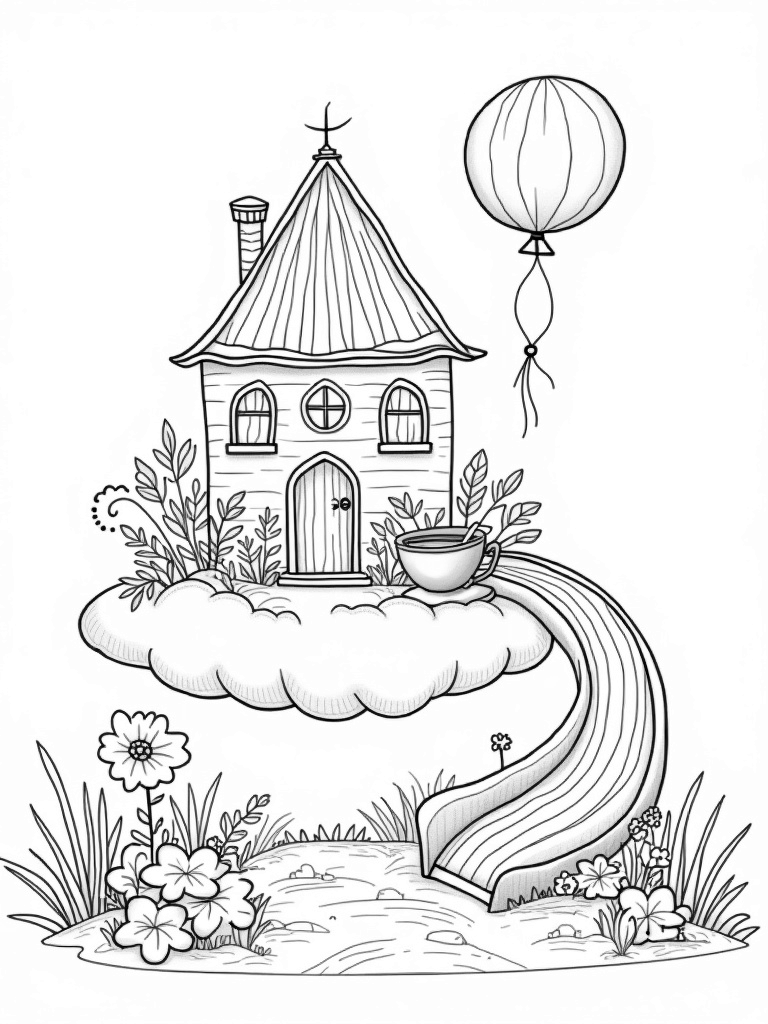 Floating Dreamhouse with Candy-Colored Walls Coloring Page