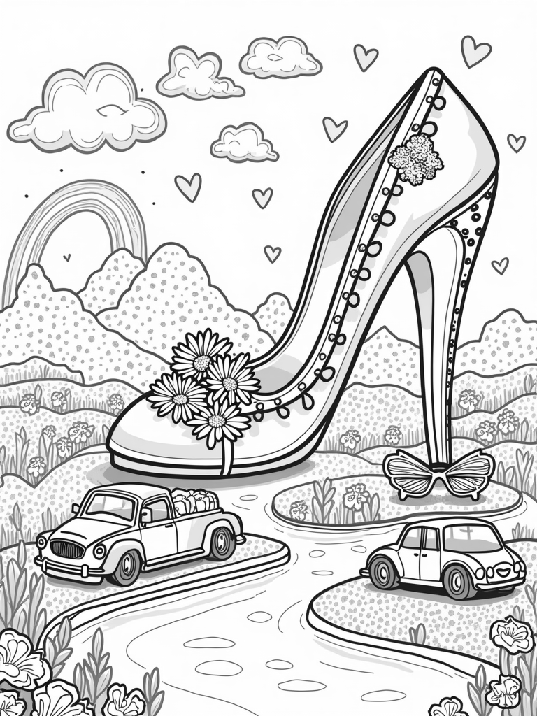 Giant High-Heeled Shoe Dreamscape Coloring Page