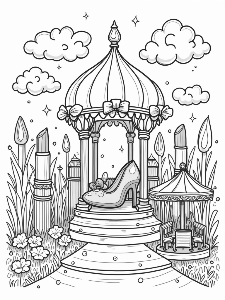 Giant High-Heeled Shoe Gazebo in a Fashion Wonderland Coloring Page