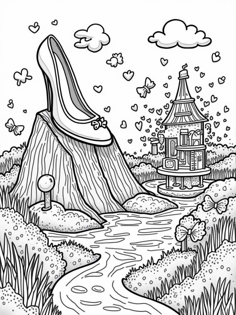 Giant Pink High Heel Slide in a Dreamland of Fashion Accessories Coloring Page