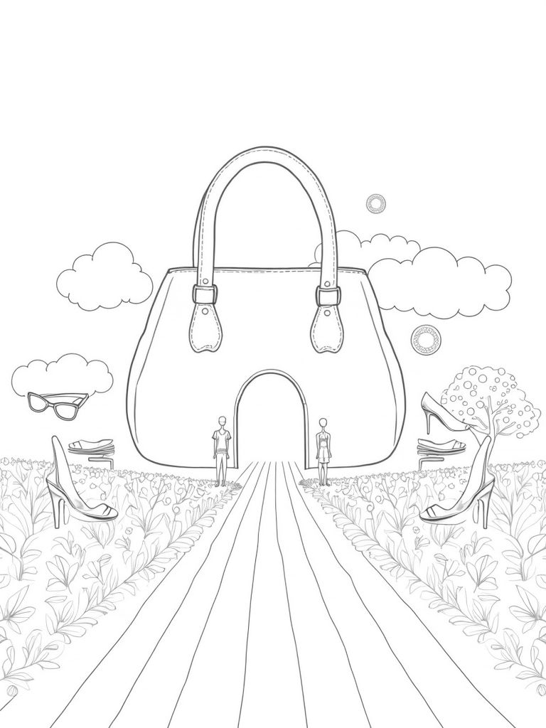 Pastel Handbag Dreamscape with Fashion Accessories Coloring Page