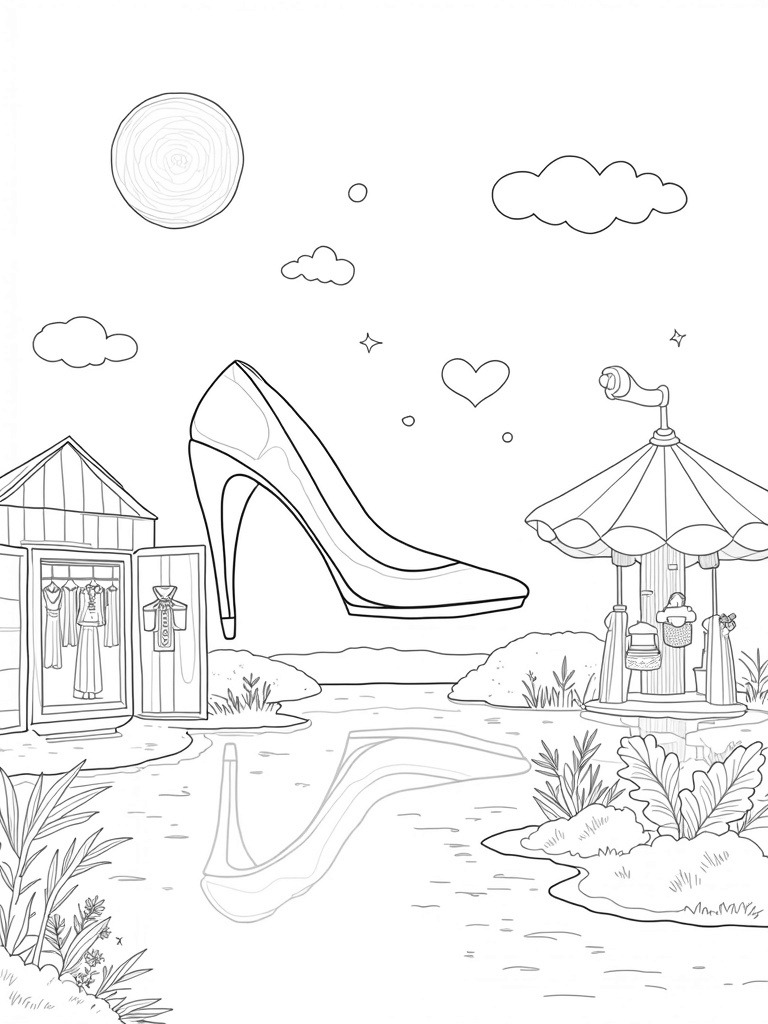 Pastel High Heel Over a Sparkling Lake Coloring Page