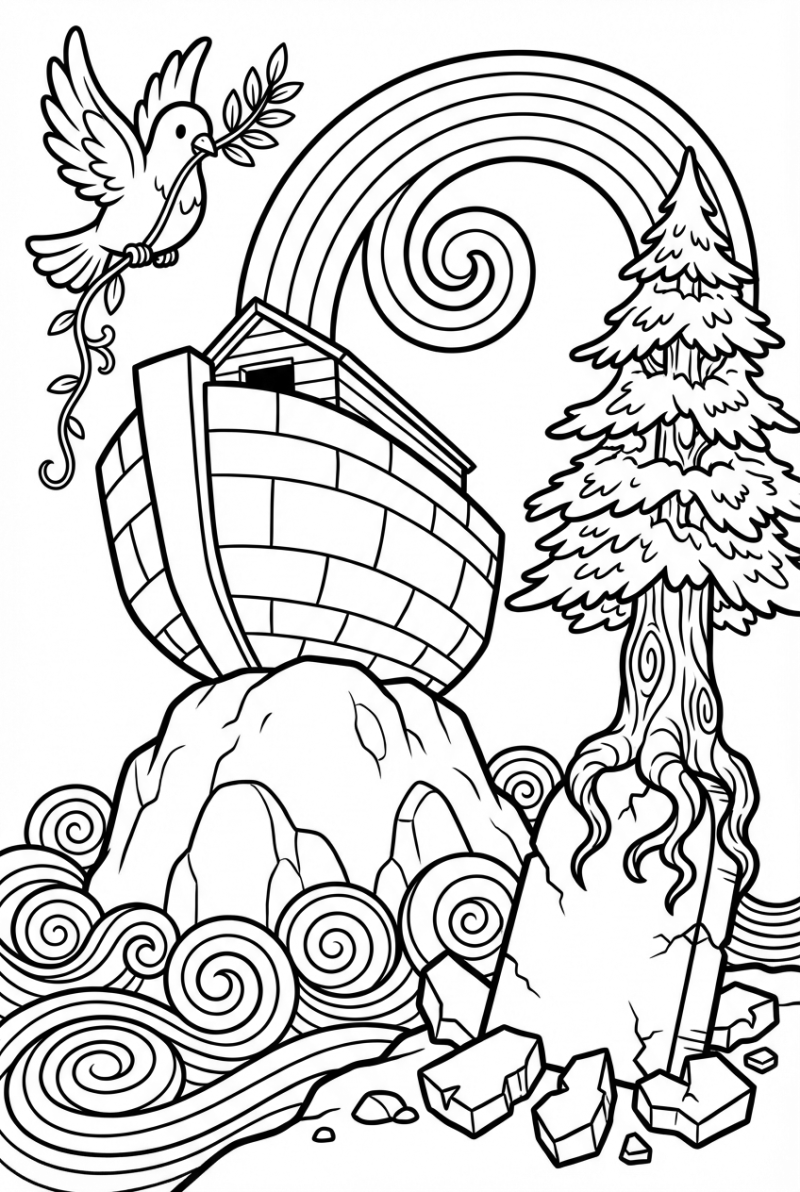 Did you know the rainbow in the Noah story is a promise of hope after the flood? Kids love coloring the dove because it represents peace, and the cedar tree is a cool way to talk about strong, sturdy wood that was used to build the ark. When you color, try using bold, bright colors for the rainbow and soft shades for the waves – it makes the whole picture pop!
