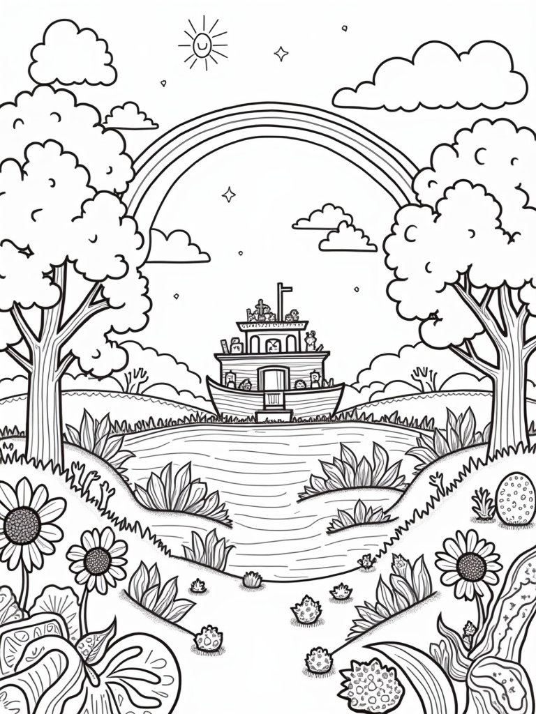 Giant Ark in a Colorful Garden Coloring Page