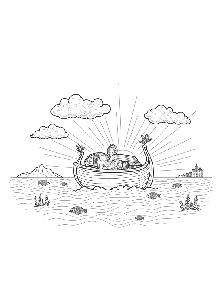 Check out this free, printable coloring page featuring a majestic ark on a tranquil sea. Perfect for kids who love Bible stories, this design invites creativity and fun with its vibrant elements. Grab your crayons and get started!