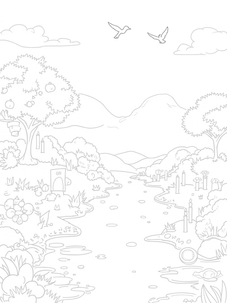 Check out this free, printable coloring page featuring a majestic garden with oversized fruit trees, a serene river, and doves soaring overhead. Perfect for kids who love nature and stories from the bible!