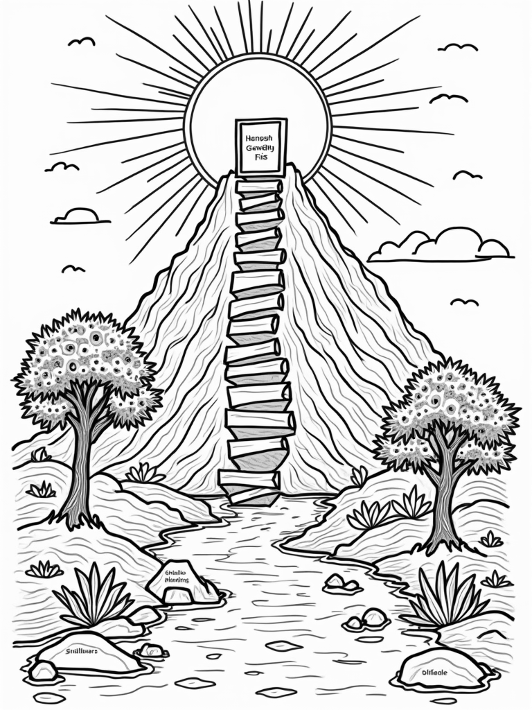 Mountain of Scrolls Leading to the Sun Coloring Page