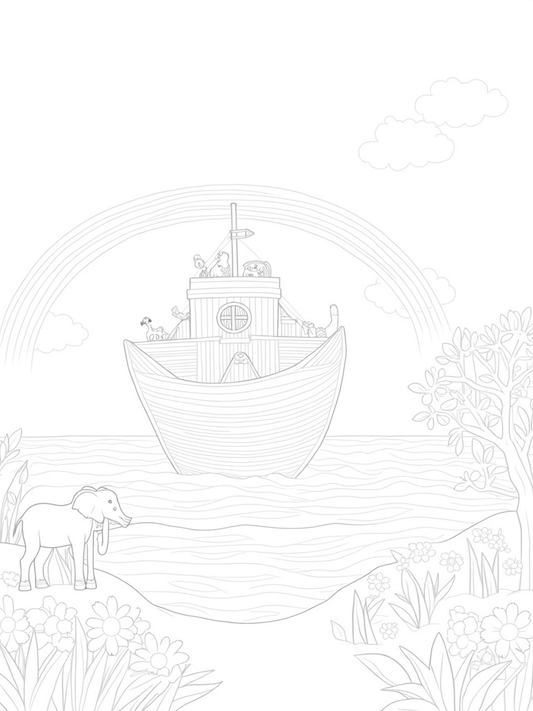 Check out this free, printable coloring page featuring Noah's Ark! With animals, a beautiful rainbow, and lush surroundings, it’s perfect for kids who love Bible stories and coloring fun.