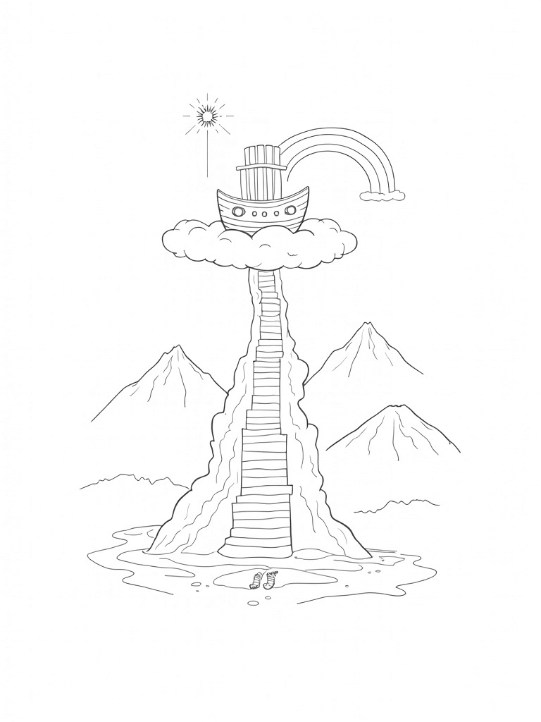 Towering Staircase to the Ark in the Clouds Coloring Page