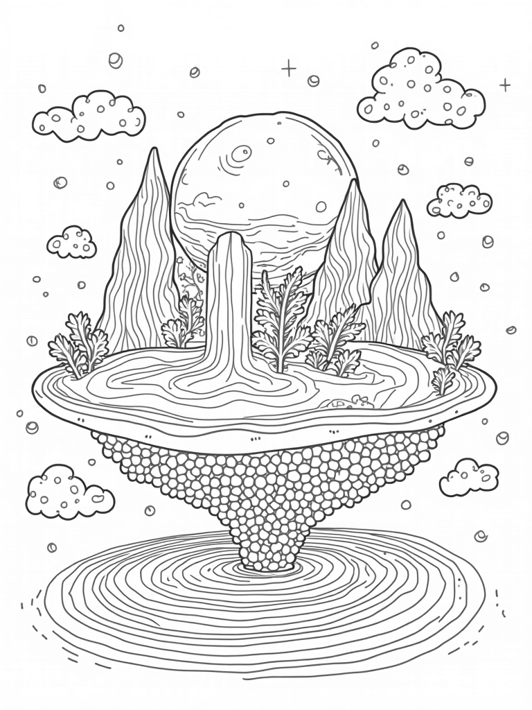 Boba Planet with Tapioca Waterfalls and Straw Trees Coloring Page