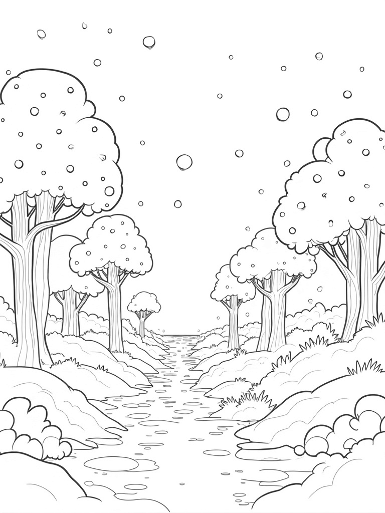 Boba Tea Forest with Tapioca Trees and Sweet Milk Waterfall Coloring Page