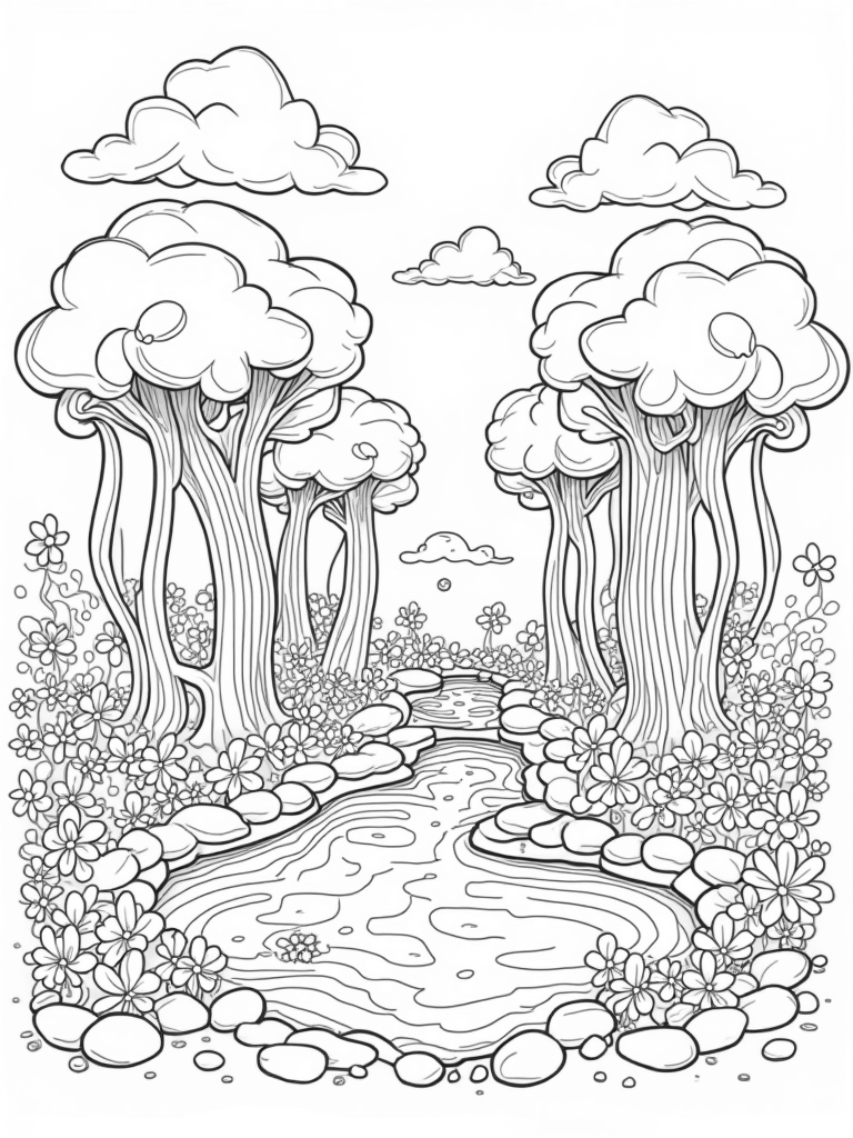 Check out this free, printable coloring page featuring a delightful boba tea garden! With bubble tea trees, tapioca pearls, and a fruity pathway, it's a fun and colorful way for kids to explore their creativity.