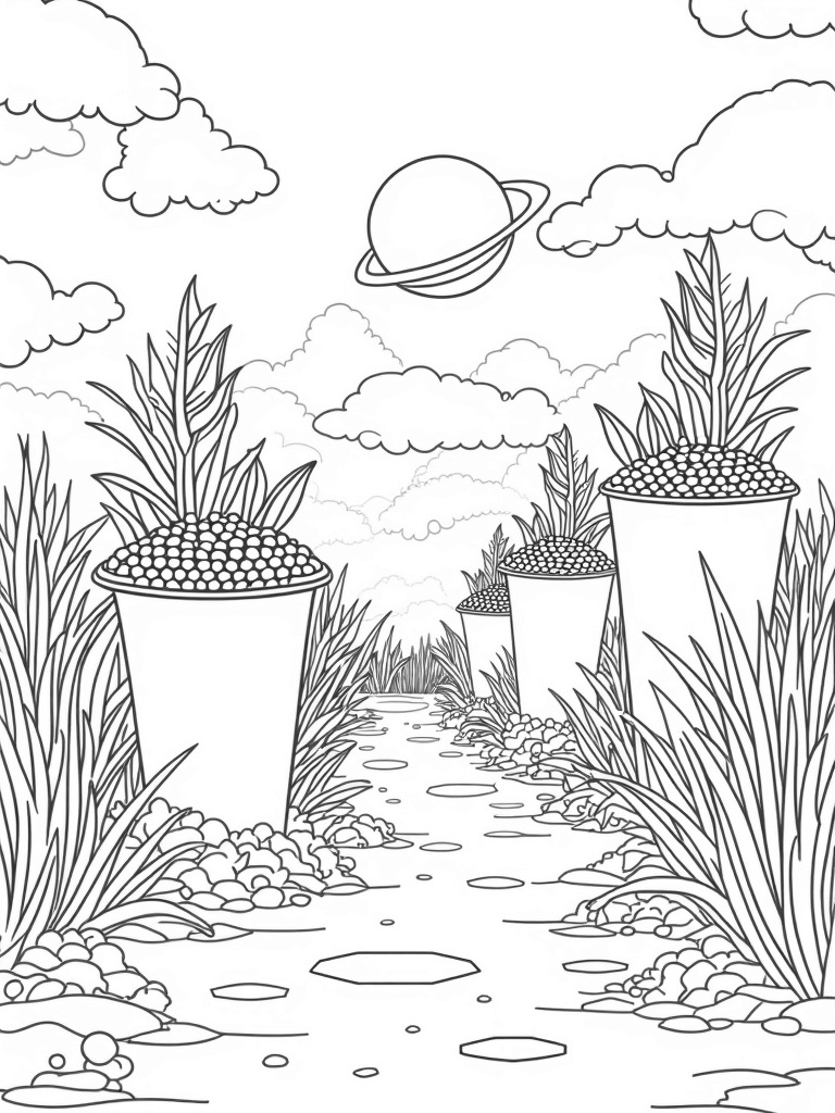 Boba Tea Garden with Colorful Tapioca Pearls Coloring Page