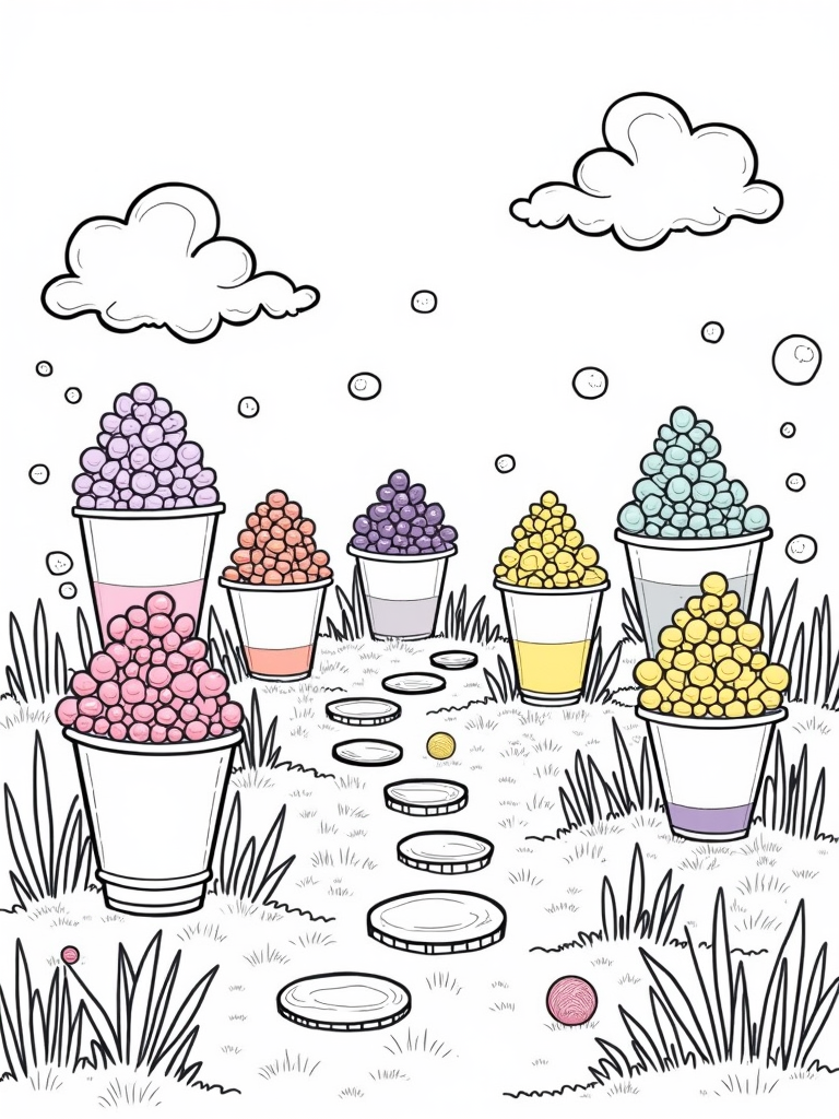 Boba Tea Garden with Oversized Cups Coloring Page