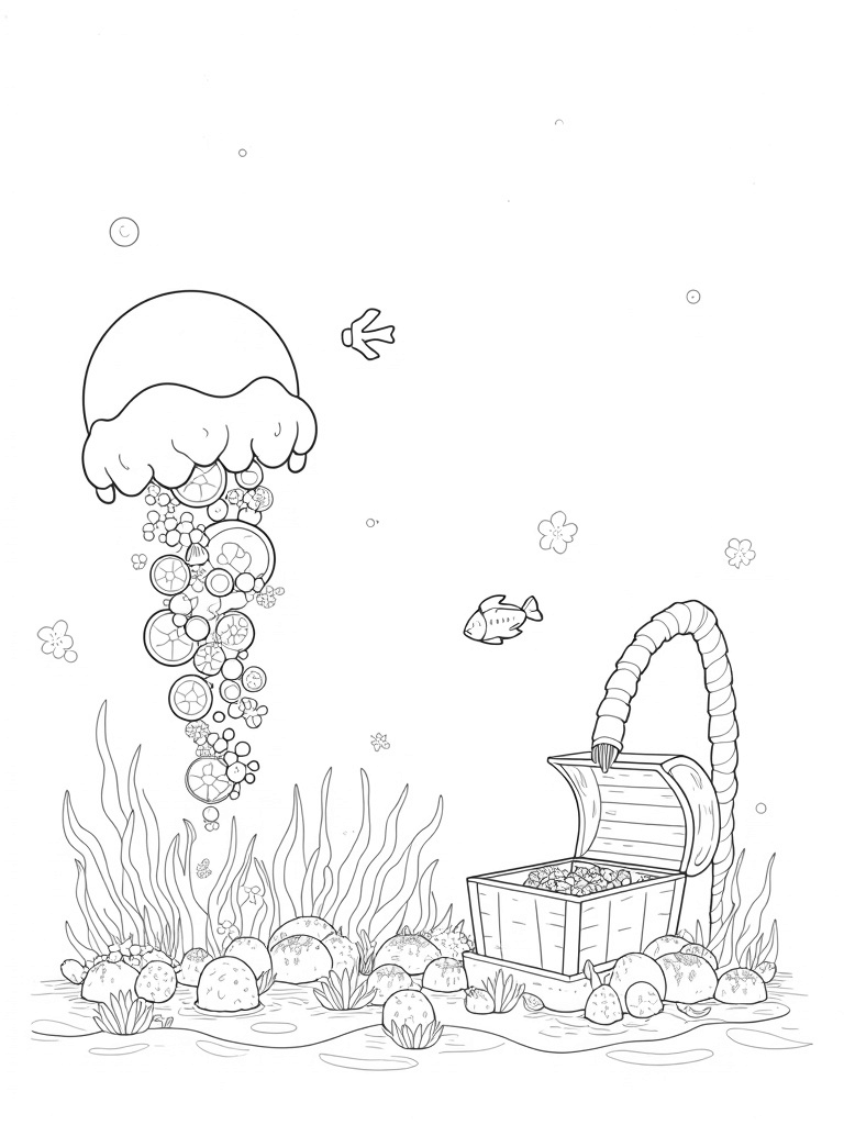Underwater Boba Garden with Jellyfish Pearls Coloring Page