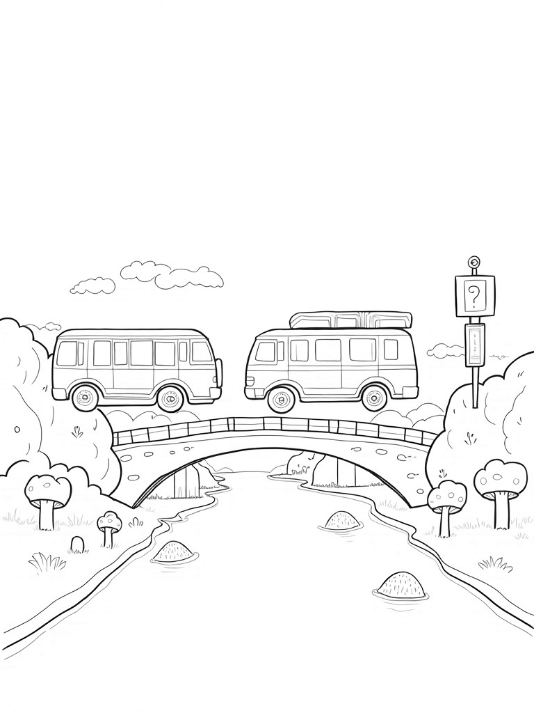 Grab your favorite crayons or markers and get ready to bring this whimsical scene to life. You could color the watermelon bus in bright greens and pinks or give the book bus a classic look with browns and golds. The crayon bridge is perfect for a rainbow of colors, and the traffic signs can be as silly or serious as you want them to be!