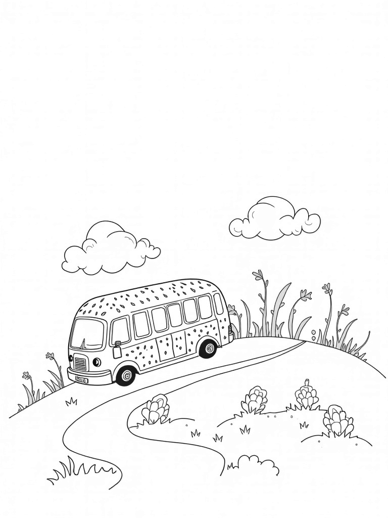 Check out this free, printable coloring page of a fruit-shaped bus parked on a colorful hilltop. Perfect for kids who love buses and bright designs, this fun coloring page is sure to inspire creativity while they color!