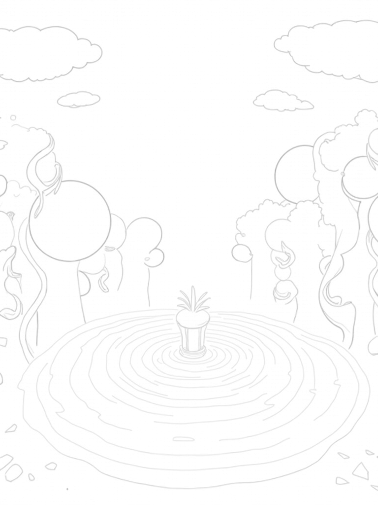 Colossal Fruit Orchard with Bubbly Fountain Coloring Page
