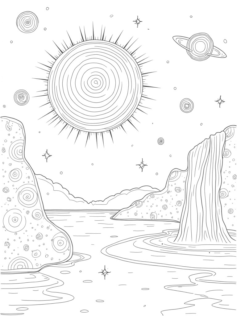 Galactic Sunshine and Playful Circles Coloring Page