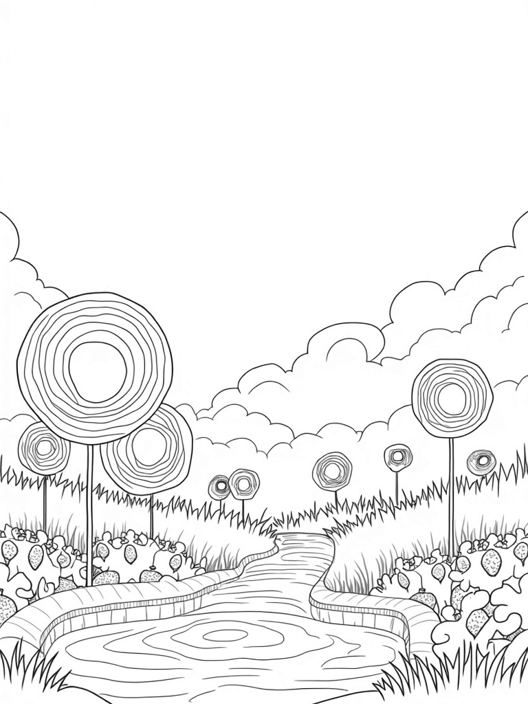 Check out this free, printable coloring page featuring a whimsical garden of giant circles! It's a fun way for kids to express their creativity while coloring flowers, clouds, and a fountain. Perfect for circle lovers!