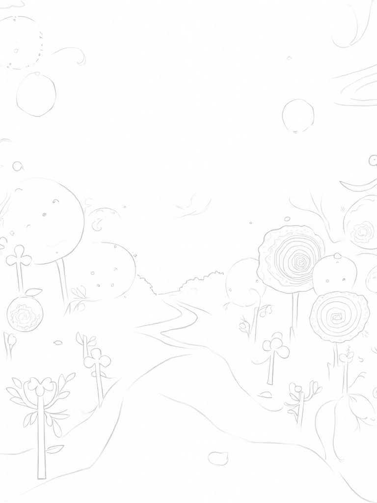 A winding path made of concentric circles leads you through this enchanting scene. On either side, you’ll find charming flowers shaped like circles, each petal dotted with playful polka dots. The sun shines brightly in the background, its circular face beaming down and casting delightful shadows, making it a perfect spot for little imaginations to run wild!