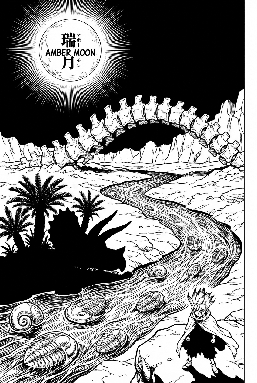 Take a look at that giant spine stretching across the horizon like a stone bridge. Below it a slow‑moving river of polished trilobite shells curls gently, and towering cycads sprout in a shape that almost mirrors a triceratops horn. Over everything hangs a soft, amber‑glow moon that bathes the whole scene in a pale, almost magical light. The line art is clean and bold, perfect for kids who love big, expressive drawings.
