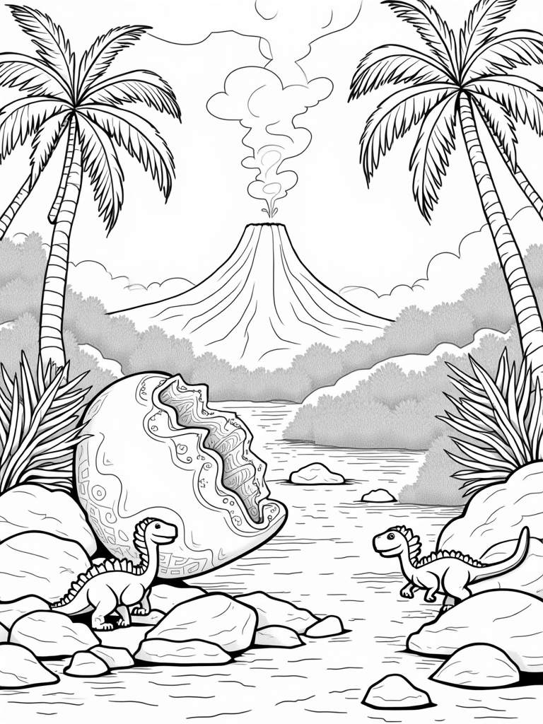 Dinosaur Egg Hatching in a Prehistoric Jungle Coloring Page