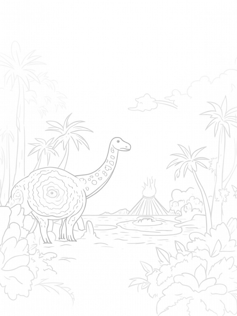 Dinosaur in a Prehistoric Jungle Coloring Page