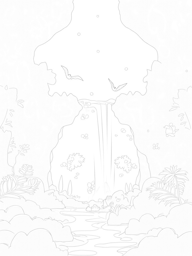 The scene is set in a vibrant prehistoric jungle, where you can find a towering brontosaurus peacefully munching on leaves. Its long neck stretches up to the giant flowers that dot the landscape. Not too far away, a stegosaurus stands proudly under a magnificent waterfall, its spiky plates sparkling in the mist. As you look closer, you’ll notice large dinosaur footprints that lead to a mysterious cave filled with glimmering crystals. And don't forget to look up! Pterodactyls are soaring gracefully above, their wings spread wide against the swirling sky. What a colorful and lively place!