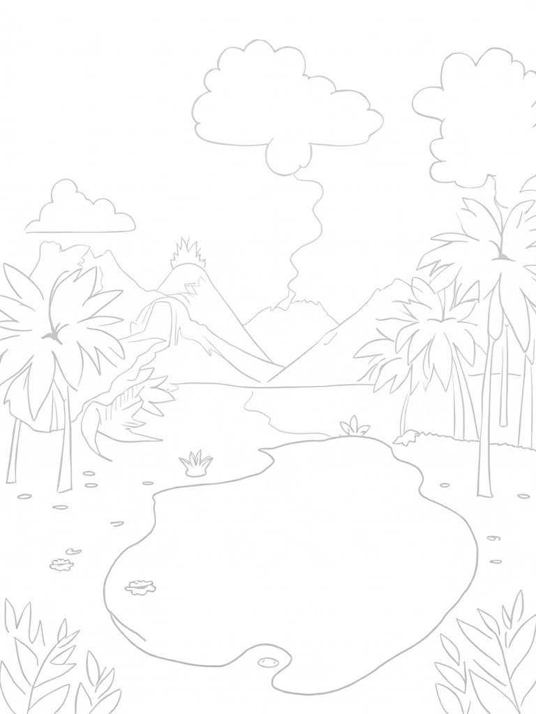 Prehistoric Jungle with Dino Footprint Pond Coloring Page