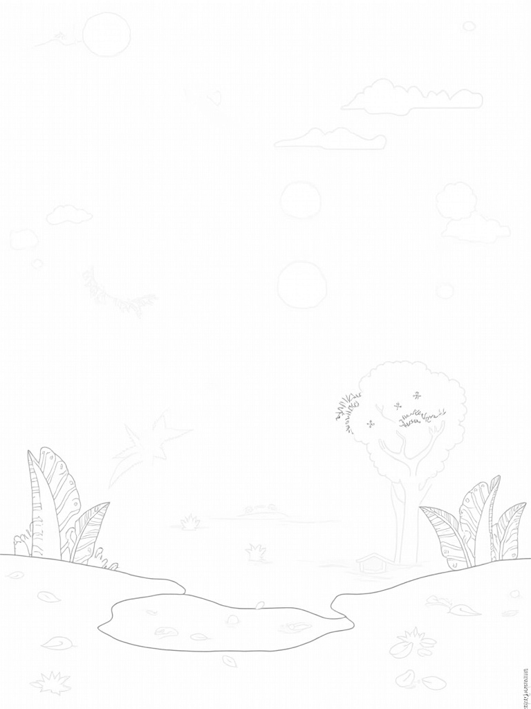 Prehistoric Jungle with Dinosaur Footprint Pond Coloring Page