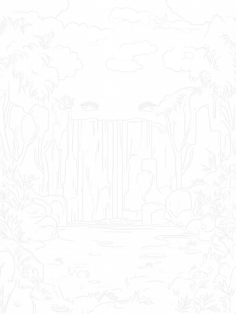 Prehistoric Jungle with Dino Footprint and Waterfall Coloring Page
