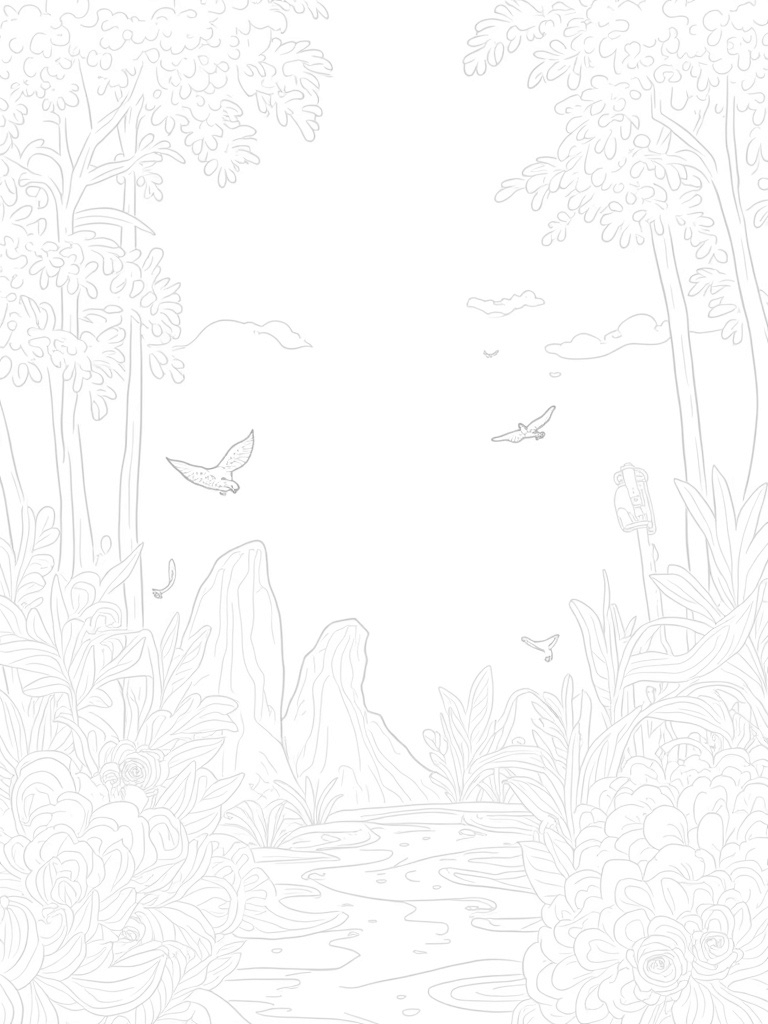 As you color, keep an eye out for scattered dinosaur bones peeking through the lush foliage. They add a hint of mystery, making you wonder what other creatures used to roam this jungle. It's a perfect way to spark your imagination while you bring this prehistoric world to life with color!