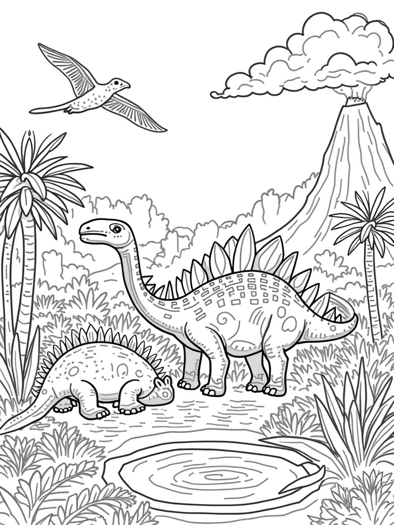 Stegosaurus and Ankylosaurus in a Prehistoric Jungle Coloring Page