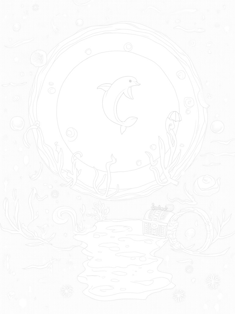 In this delightful underwater grotto, a playful dolphin is leaping through a shimmering hoop made of seaweed. Surrounding the dolphin are vibrant coral formations and swirls of water currents that create a lively underwater scene. Nearby, large seashells are opened like books, showing off intricate patterns and tiny sea creatures peeking out. It’s a colorful, exciting world just waiting to be colored in!