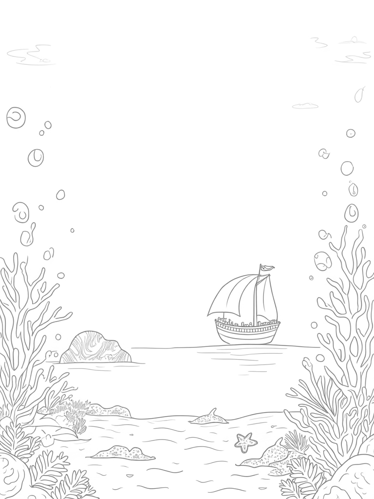In the background, there's a sunken ship that has become home to all sorts of marine life. Its tattered sails billow gently in the current, making it feel like a hidden treasure waiting to be discovered. And don’t forget about the swirling school of fish that dance around a lonely starfish resting on a vibrant bed of seaweed. It’s a lively scene that’s full of wonder!