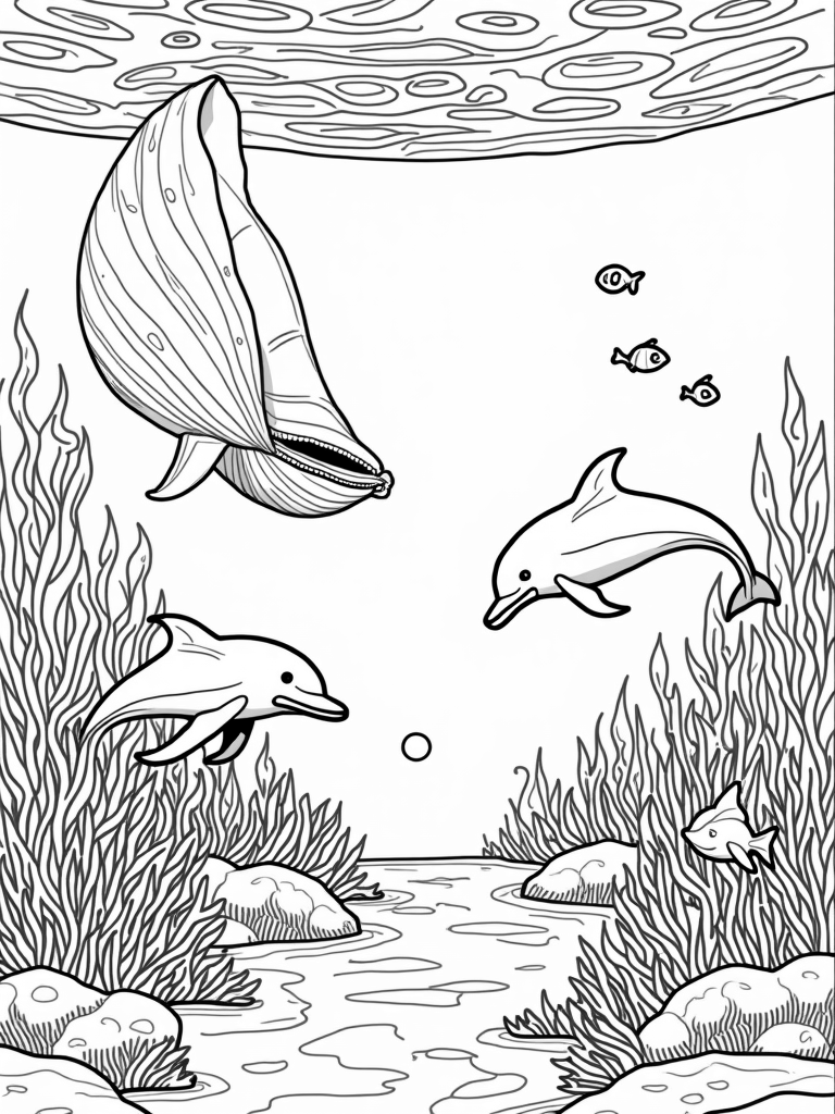 Dive into this free, printable coloring page featuring dolphins and a colorful coral reef. Perfect for kids who love ocean life, it's a great way to explore creativity while having fun with colors!