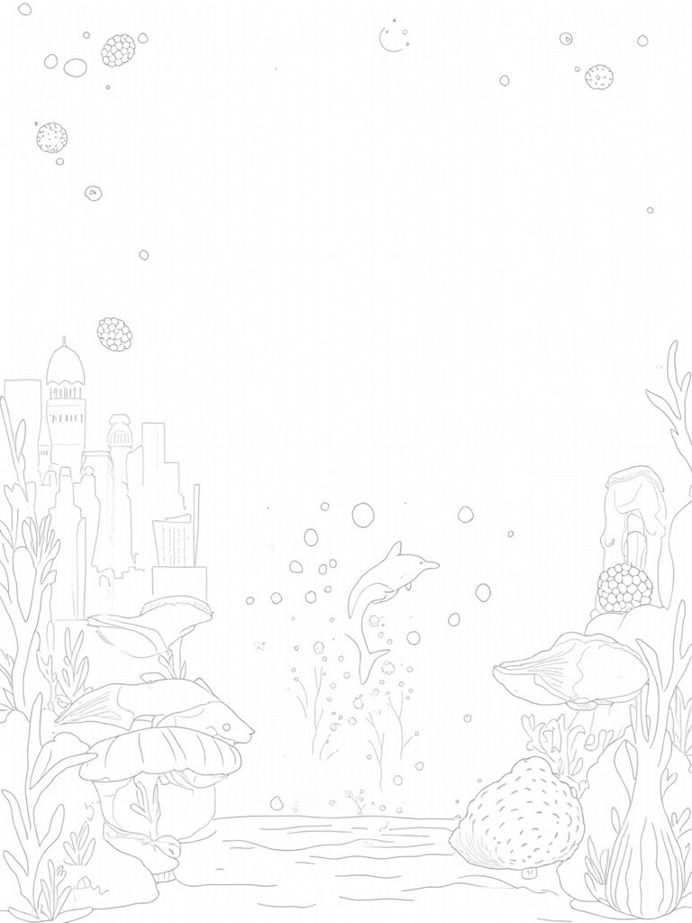 Check out this free, printable coloring page featuring a luminous underwater city filled with dolphins, jellyfish, and a whimsical seashell fountain. Perfect for kids who love to color and explore ocean life!