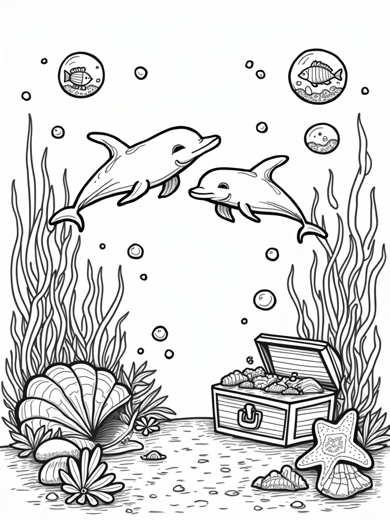 Check out this free, printable coloring page featuring playful dolphins and a colorful underwater scene. Perfect for kids who love marine life and want to get creative with their coloring!