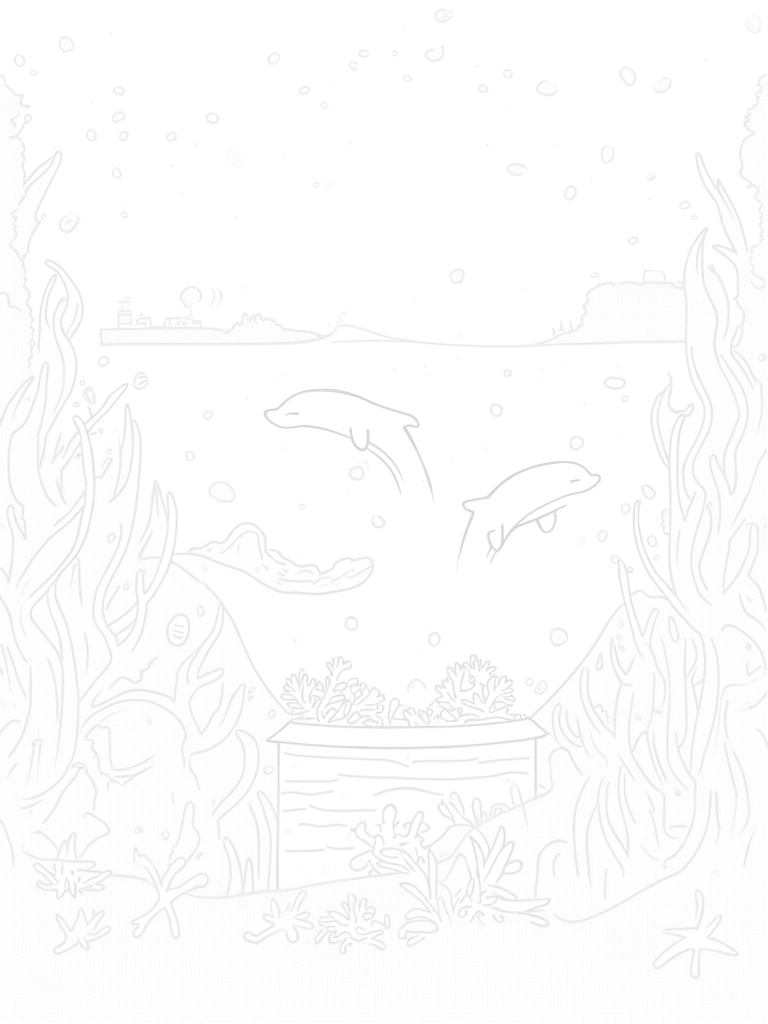 Playful Dolphins and Hidden Treasures Under the Sea Coloring Page