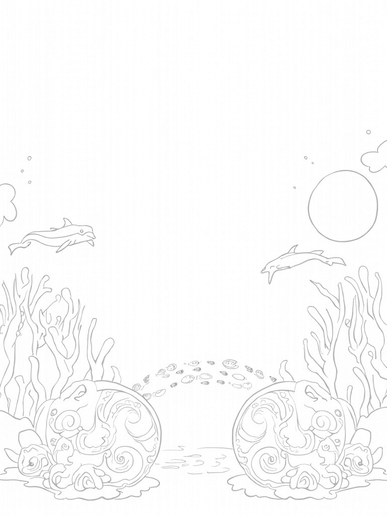 Underwater Garden with Dolphins and Coral Coloring Page