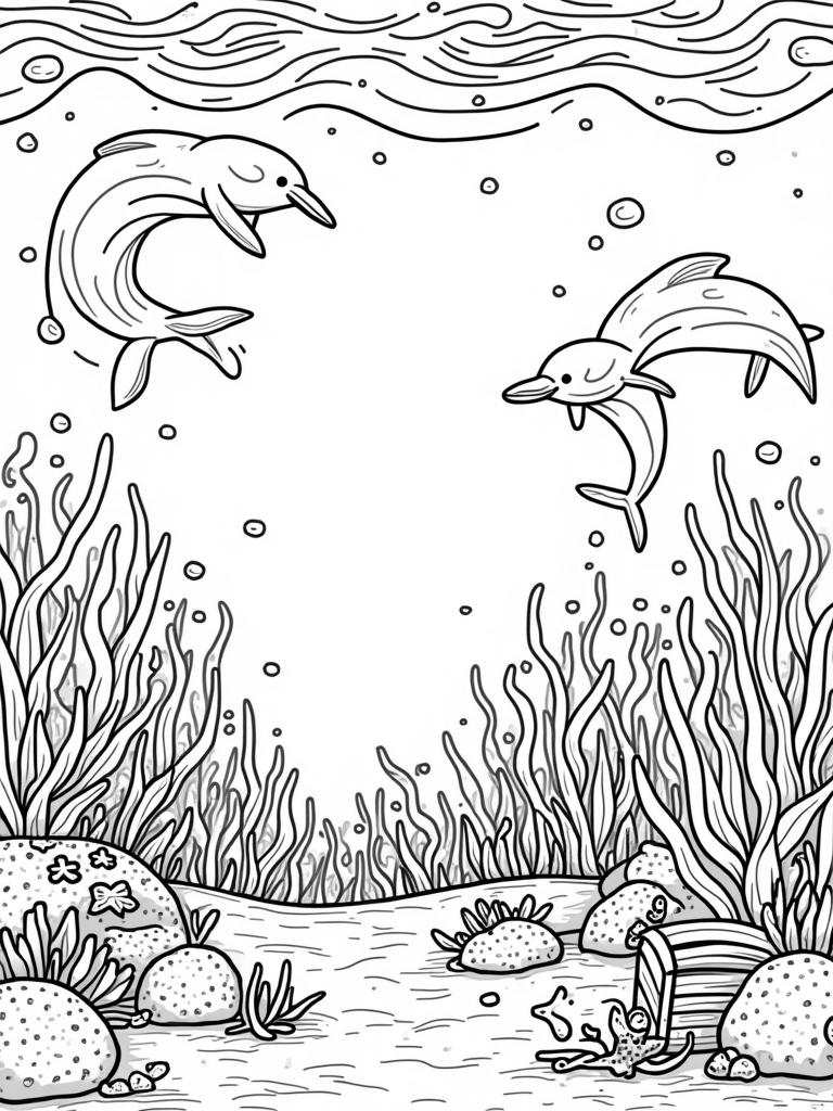 Underwater Garden with Dolphins and Friendly Octopus Coloring Page
