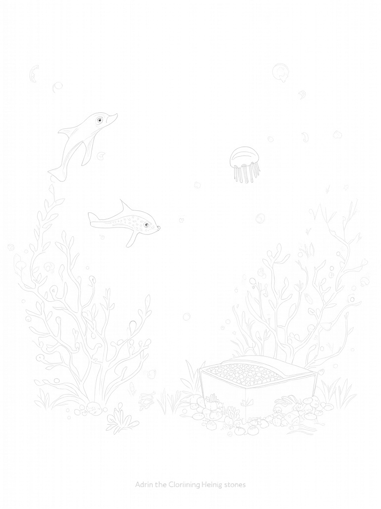 This vibrant underwater scene is packed with fun details! You’ll see coral formations that look like musical instruments, creating a whimsical garden beneath the waves. Nearby, dolphins leap through the swirling water, their bodies decorated with delightful patterns that make them even more special.