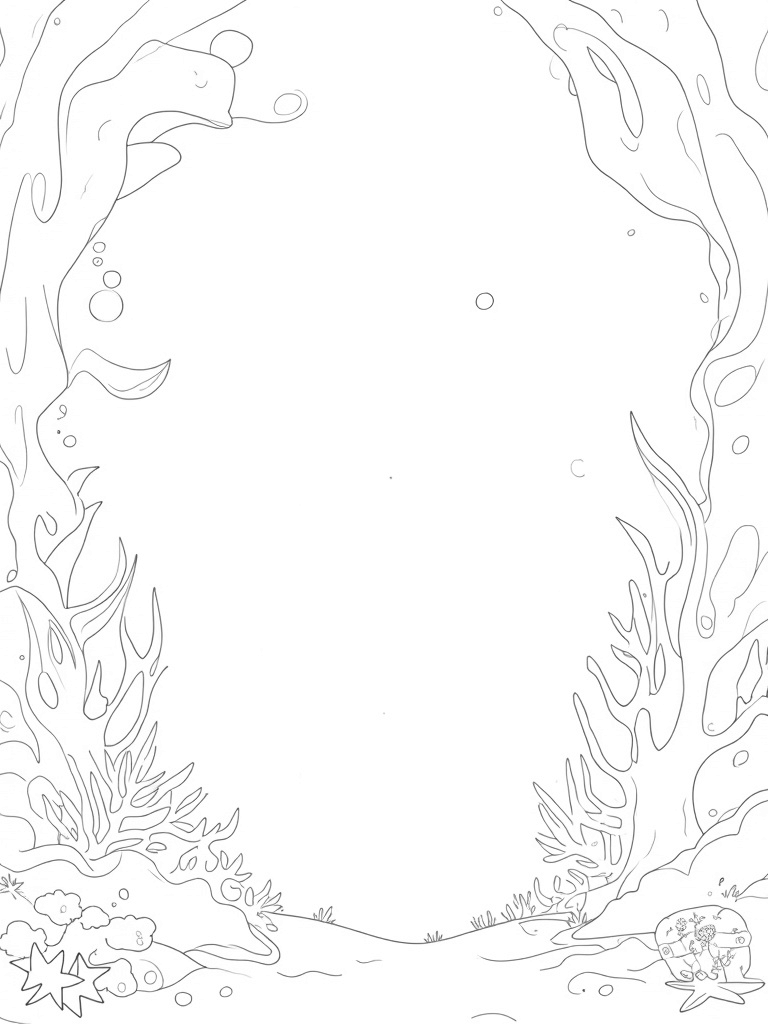 If you look closely, you might spot a sunken treasure chest peeking out from behind a curtain of kelp. It’s covered in barnacles and tiny sea creatures, waiting for a brave explorer to uncover its secrets. This scene is perfect for kids who love marine life and want to add their own splash of color to this serene underwater world.